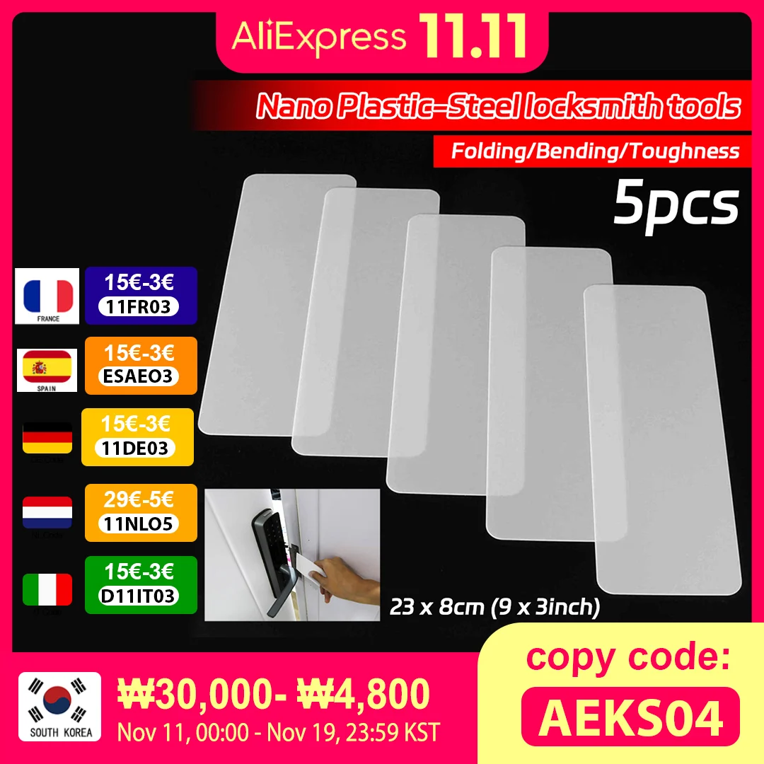 הכירו את הסט המושלם עבור מנעולנים, אנשי מקצוע וגם חובבי עשה זאת בעצמך: 5 יחידות של כלי פריצה איכותיים מפלסטיק-פלדה עמיד במיוחד. כל כלי פריצה מגיע בגודל 230×80 מ"מ, ומאפשר גישה קלה ויעילה למנגנוני נעילה שונים. הסט כולל דפי ננו איכותיים המאפשרים החלקה חלקה בין חלקי המנעול, ומסייעים בשיטות פריצה שונות כמו ג'וגלינג ו-Bypass.