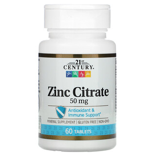 חברת 21st Century מציגה תוסף תזונה איכותי המכיל אבץ ציטראט, מינרל חיוני לתפקוד תקין של הגוף. כל טבליה מכילה 50 מ"ג של אבץ, המופק מציטראט, צורה הנחשבת ליעילה ונספגת בקלות בגוף.