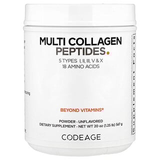 הכירו את קודייג', אבקת פפטידי קולגן מרובים, ללא טעם, 567 גרם – הפתרון הטבעי לתמיכה בגוף מבפנים החוצה. המוצר מבית Codeage מציע פורמולה ייחודית המכילה חמישה סוגי קולגן חיוניים (I, II, III, V, X) ממקורות מובחרים, לתמיכה מקיפה בבריאות.