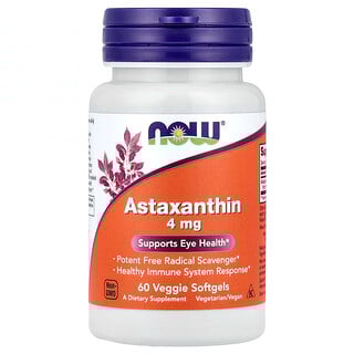 NOW Foods, אסטקסנטין, 4 מ"ג, 60 כמוסות צמחיות