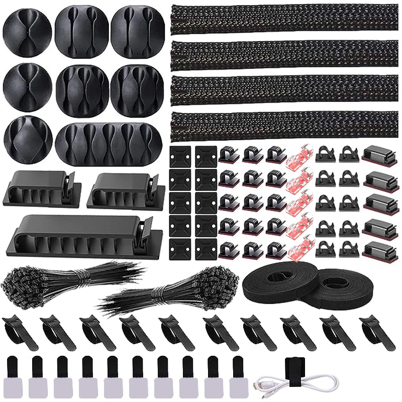 הערכה כוללת מגוון פתרונות: אזיקונים, שרוולי כבלים, תופסנים מפוצלים ומחזיקי כבלים דביקים, המאפשרים לך לתעל את הכבלים בצורה יעילה ובטוחה. השרוולים מסתירים את הכבלים ומגנים עליהם מפני בלאי, בעוד שתופסני הכבלים והאזיקונים מחזיקים את הכבלים במקום ומאפשרים גישה נוחה בעת הצורך.
