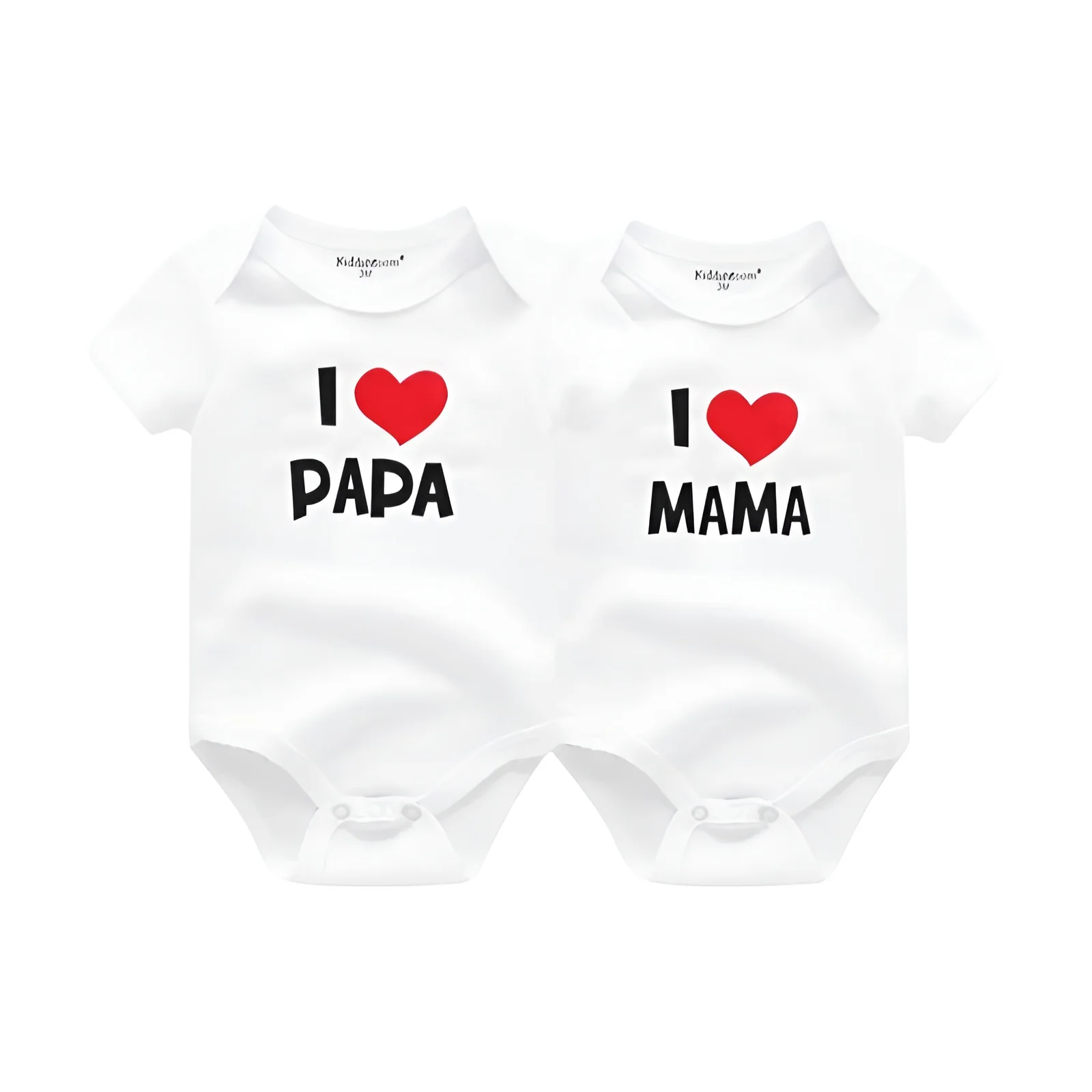מחפשים מתנה מקסימה לתאומים טריים או רוצים לפנק את התינוקות שלכם בבגדים נוחים ואיכותיים? הסט הזה של Kiddiezoom הוא בדיוק מה שאתם צריכים! סט הכולל 2 חולצות גוף (onesies) עשויות 100% כותנה רכה ונעימה במיוחד, המעניקות נוחות מרבית לעור העדין של התינוק. העיצוב חמוד וכולל את הכיתוב "I love Papa Mama" המושלם לתאומים או אחים קטנים.