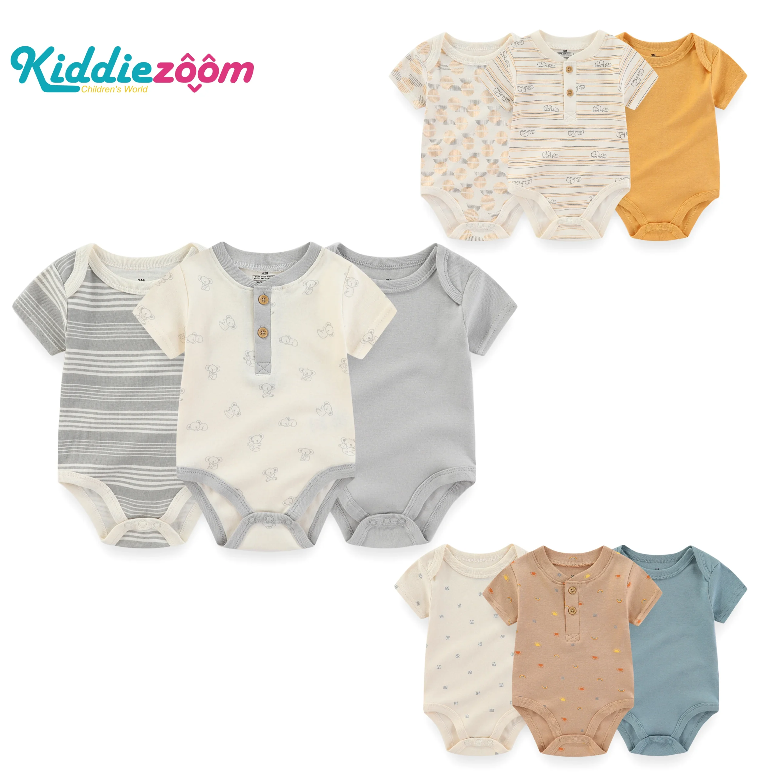 בגדי גוף לתינוקות - 3 חלקים - כותנה רכהבגדי גוף לתינוקות – 3 חלקים – כותנה רכה