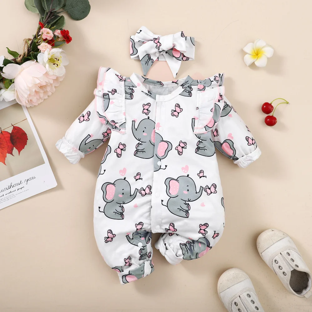 חולצת גוף לתינוקת שרוול ארוך בעיצוב פיל חמוד היא הבגד המושלם לתינוקת שלך! הבייבי גירל רומפר הזה, המגיע עם סרט ראש תואם, מעוצב במיוחד לנוחות ותנועה חופשית. הבד נעים ואיכותי, אידיאלי לעור העדין של תינוקות, ומבטיח שהקטנטנה שלך תרגיש בנוח לאורך כל היום. הרומפר מתאים לתינוקות בגילאי 0-18 חודשים, מה שהופך אותו לבחירה מצוינת כמתנה או כפריט לבוש יומיומי.