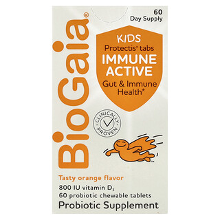 BioGaia Protectis Kids Immune Active בטעם תפוז טעים – 60 טבליות מציצה פרוביוטיות מציע פתרון טעים ונוח לתמיכה במערכת החיסון של ילדכם. טבליות המציצה מכילות את החיידק הפרוביוטי Lactobacillus reuteri Protectis, אשר הוכח מחקרית כתורם לאיזון אוכלוסיית החיידקים הטובים במעי. שילוב זה עם ויטמין D מסייע בחיזוק המערכת החיסונית, חיוני לבריאות הכללית. טבליות ה- BioGaia Immune Active בטעם תפוז מצוין, ללא סוכר, מה שהופך אותן לבחירה מצוינת עבור ילדים.