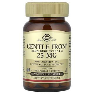 Solgar Gentle Iron® 25 מ"ג – 90 כמוסות צמחיות: ברזל עדין לספיגה מעולה! סולגאר מציעה פתרון יעיל ועדין לתמיכה ברמות הברזל בגוף. תוסף תזונה זה, המכיל 25 מ"ג של ברזל ביסגליצינאט, ידוע בספיגתו המצוינת ובמיעוט תופעות לוואי במערכת העיכול, כמו בחילות ועצירות, המאפיינות לעיתים תוספי ברזל אחרים. Gentle Iron® (ברזל עדין) של סולגאר מתאים במיוחד לאנשים הסובלים מחוסר ברזל, לנשים בהריון או מניקות, לספורטאים, צמחונים וטבעונים, ולאנשים עם קשיי ספיגה.
