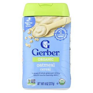 גרבר דגני שיבולת שועל אורגניים, 1st Foods®, 227 גרם – התזונה המושלמת להתחלה של התינוק שלך! דגני שיבולת שועל אורגניים של גרבר הם בחירה מצוינת עבור התינוק שלך בשלב הטעימות הראשון. עשויים משיבולת שועל מלאה, המעובדת בתהליך עדין, הדגנים הללו מספקים הזנה עשירה וטעם עדין שתינוקות אוהבים. מוצר זה מותאם במיוחד לתינוקות בשלב 1, ומציע פורמולה קלה לעיכול וללא תוספת סוכר או מלח.