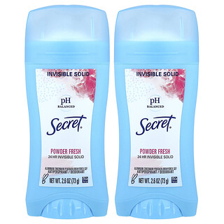 סוד הגנה מירבי: דאודורנט סודי Secret, מאוזן pH, מוצק בלתי נראה, Powder Fresh (מאבקה רעננה) – מארז כפול