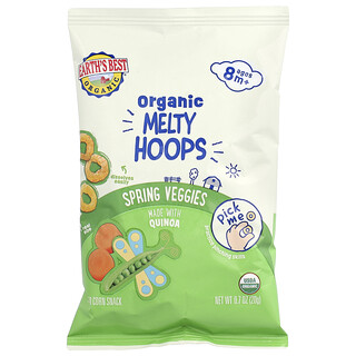 הכירו את Earth's Best Melty Hoops – חטיף התירס הנמס המושלם עבור הקטנטנים שלכם, מגיל 8 חודשים ומעלה! חטיפי התירס שלנו, בטעם ירקות אביב מענג, הם דרך נפלאה להציע לתינוקכם טעמים חדשים ולהעשיר את תזונתו.