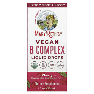 בחרו בטיפות B קומפלקס טבעוניות בטעם דובדבן מבית MaryRuth's – דרך טעימה ובריאה לתמוך בגופכם.
