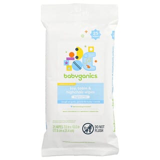 מגבונים לניקוי צעצועים, שולחנות וכיסאות אוכל לתינוקות מבית Babyganics – הפתרון המושלם לשמירה על סביבה נקייה ובטוחה עבור הקטנטנים שלכם. המגבונים, המכילים 25 יחידות, מיועדים לשימוש יומיומי ומסירים ביעילות לכלוך, אבק וכתמים ממשטחים שונים, מבלי להשאיר שאריות או ריח.
