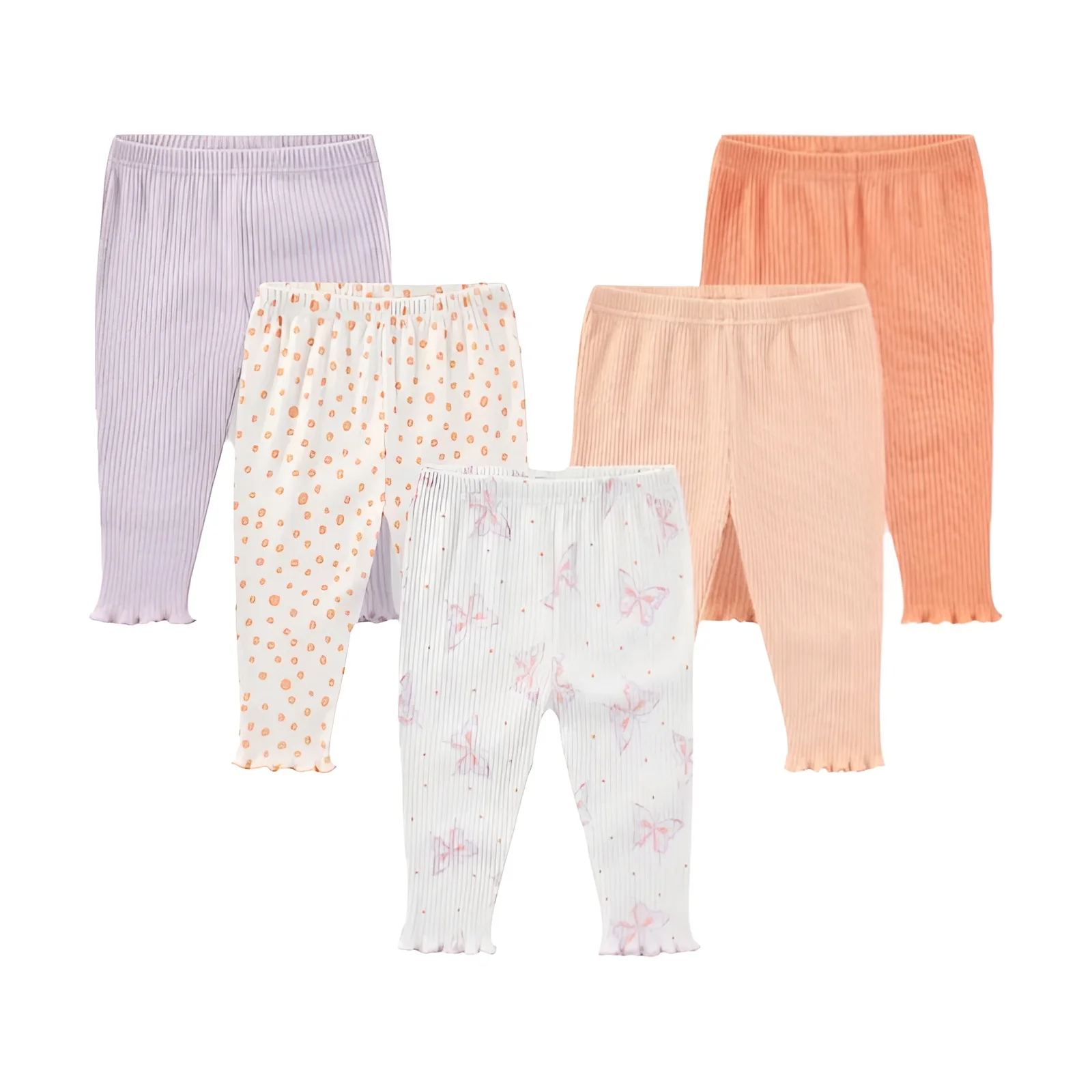 הסט כולל 5 זוגות מכנסיים בצבעים חלקים ונעימים, המתאימים לשימוש יומיומי וניתנים לשילוב עם כל בגד.