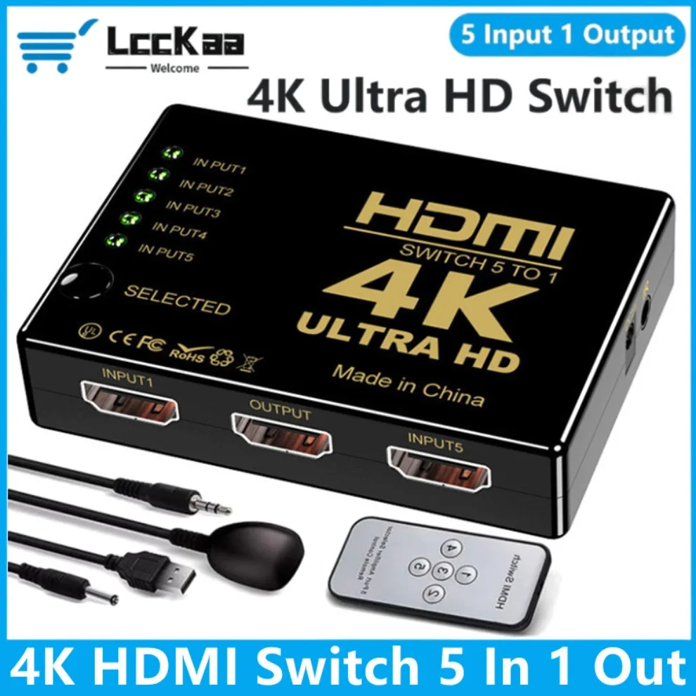 הכירו את ה- 5 ב-1 אווט HDMI KVM Switcher המהפכני, פתרון אולטימטיבי לניהול חכם של מכשירי המולטימדיה שלכם. עם יכולת תמיכה באיכות וידאו 4K Ultra HD, ה- 5×1 HDMI Switcher מאפשר לחבר עד 5 מקורות וידאו שונים (כמו קונסולות משחק, נגני DVD, מחשבים ניידים ועוד) למסך יחיד, ולעבור ביניהם בקלות בלחיצת כפתור.