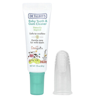 הנוסחה העדינה של מנקה שיניים וחניכיים לתינוקות של Dr. Talbots, בטעם חלב וניל עדין, בטוחה לבליעה ואינה מכילה פלואוריד, פרבנים או צבעים מלאכותיים. המרקם העדין עוזר להסיר בעדינות שאריות מזון וחיידקים מהשיניים והחניכיים של התינוק, ומסייע במניעת הצטברות רובד וחורים עתידיים. הסט כולל גם מעסה חניכיים רך, לעיסוי עדין של החניכיים, המקל על אי נוחות בתקופת בקיעת השיניים.