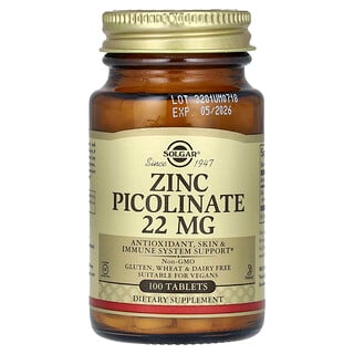 Solgar Zinc Picolinate 22 מ"ג – 100 טבליות: בריאותך מתחילה כאן