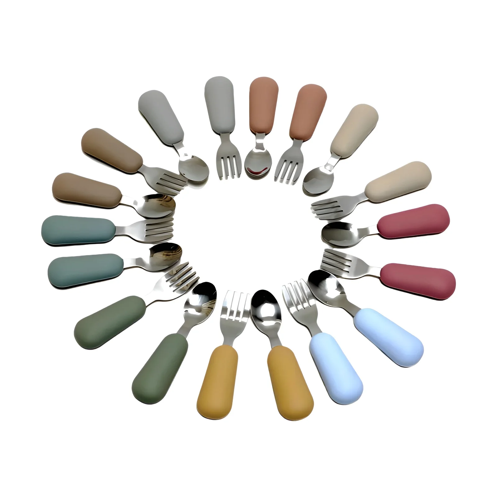 סט סכו,ם לתינוק – מזלג כפית סיליקון נירוסטהסט סכו,ם לתינוק – מזלג כפית סיליקון נירוסטה