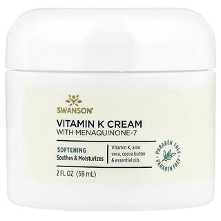 הכירו את קרם ויטמין K המהפכני של Swanson, המכיל Menaquinone-7 (MK-7), צורה פעילה במיוחד של ויטמין K2. פורמולה ייחודית זו מציעה ספיגה משופרת ויעילות מרבית. הויטמין K ידוע בתרומתו לבריאות העור, ומסייע בצמצום הופעת נימים, שטפי דם, וקמטוטים.