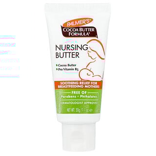 Palmers, Cocoa Butter Formula®, Nursing Butter הוא קרם טבעי לעור המיועד לאמהות מניקות. מועשר בחמאת קקאו טהורה, ויטמין E, ופטנט ייחודי המעניק לחות אינטנסיבית ומסייע בהרגעת עור סדוק וכואב בפטמות.
