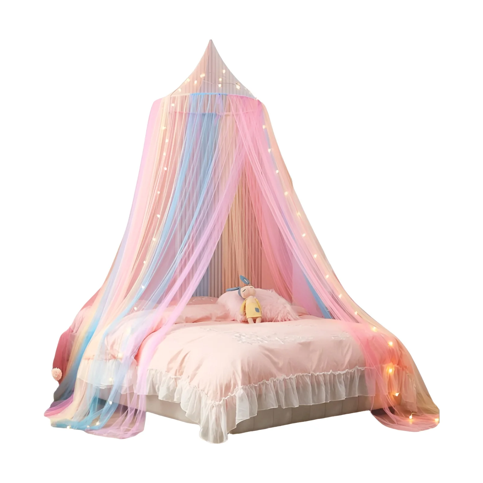 הכירו את רשתות וילון לחדר תינוקות – כיפת קשת בענן של הנסיכה, הפתרון המושלם ליצירת חלל שינה בטוח, נעים ומעוצב לתינוק או תינוקת שלכם. וילון זה, המעוצב בצורת כיפה רומנטית עם קישוטי קשת בענן, לא רק מגן מפני יתושים וחרקים מציקים, אלא גם מוסיף נופך של קסם ודמיון לעיצוב חדר הילדים.