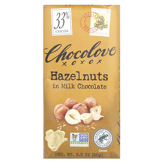 שוקולד חלב אגוזי לוז Chocolove – 33% קקאו 90 גרם