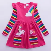 שמלת חד קרן ארוכה עם שרוולים רקמה סתיו