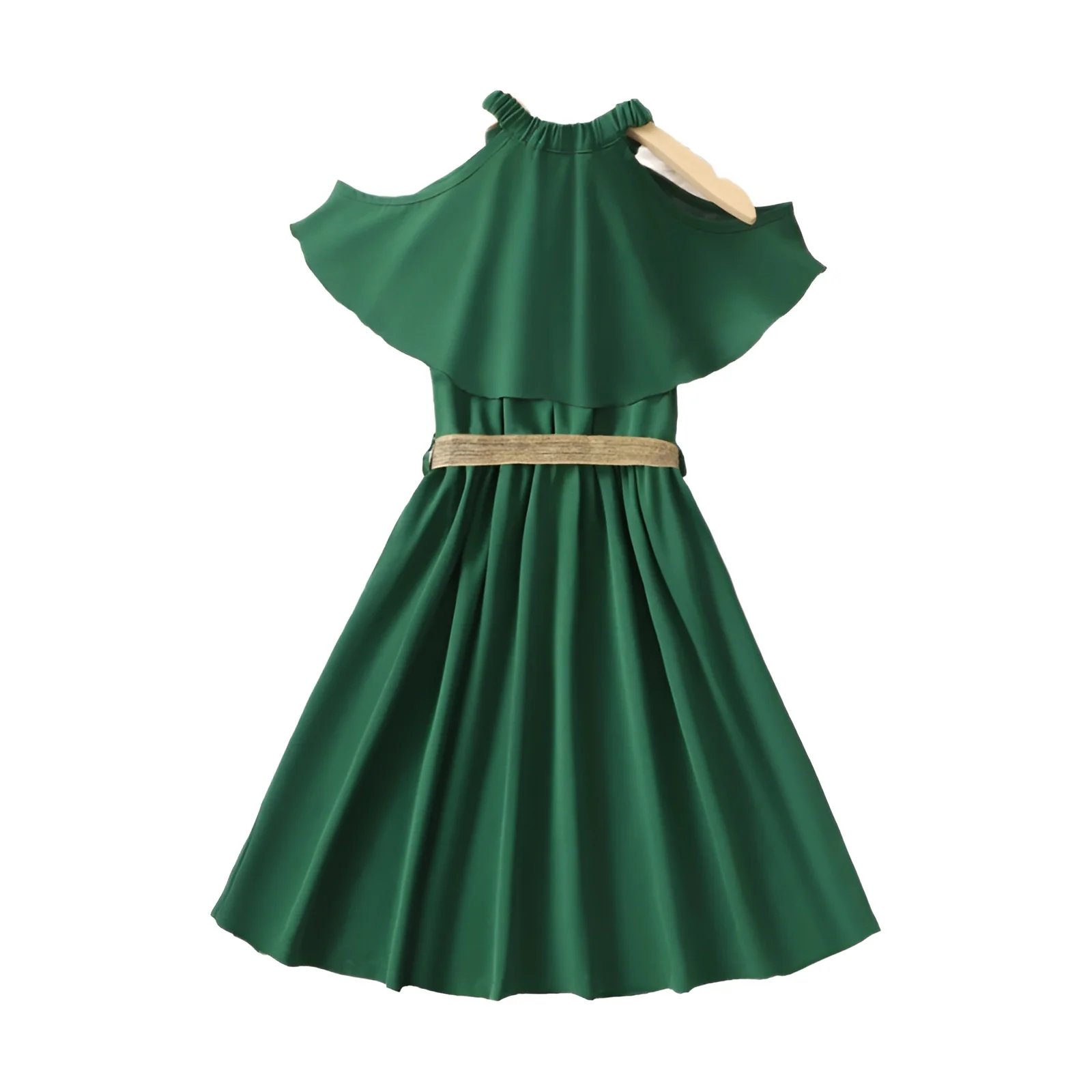 הכירו את שמלת הנסיכה הירוקה המושלמת לילדתכם! שמלה זו, המיועדת לבנות בגילאי 8-12, היא הבחירה האידיאלית לימי הקיץ החמים, לבית הספר או לבילוי יומיומי. ה-8-12 Years Children Girl Princess Dress Off Shoulder Green Dress with Belt מעוצבת בגזרת A אלגנטית ומחמיאה, עם כתפיים חשופות טרנדיות וחגורת מותן המדגישה את הגזרה. הצבע הירוק העשיר והרענן מעניק לשמלה מראה קליל וקיצי, והיא עשויה מבדים נושמים ונעימים לעור.