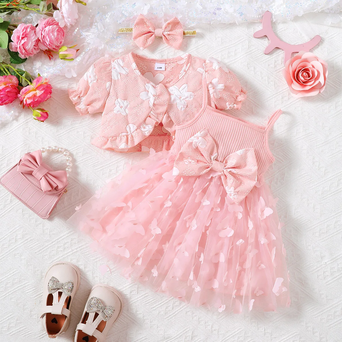 הכיני את הקטנטנה שלך לחגיגה עם שמלת נסיכה מרהיבה! שמלת ילדות 0-3 שנים בעיצוב פרפר קסום, מושלמת לימי הולדת, מסיבות וצילומים. השמלה כוללת שמלת נסיכה פלאפית, צעיף אלגנטי וסרט ראש תואם, ליצירת מראה חלומי ובלתי נשכח. שמלת ילדות 0-3 מעוצבת בקפידה, עם דגש על נוחות ובטיחות, ומבטיחה שהקטנה שלך תיראה ותרגיש כמו נסיכה אמיתית. הבד איכותי ורך על העור, מתאים לשימוש לאורך כל היום. השמלה זמינה במגוון מידות לגילאי 0-3 שנים, ומבטיחה התאמה מושלמת.