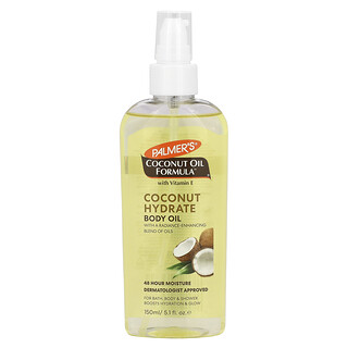 חווית טיפוח מפנקת לעור יבש וחסר חיים עם Palmers Coconut Oil Formula® with Vitamin E, Coconut Hydrate Body Oil. שמן גוף עשיר במיוחד המועשר בשמן קוקוס טבעי, המעניק לחות עמוקה וממושכת, מזין את העור ומותיר אותו רך, גמיש וזוהר. נוסחת השמן קלילה ונספגת במהירות, אינה שמנונית ומותירה ניחוח קוקוס משכר.
