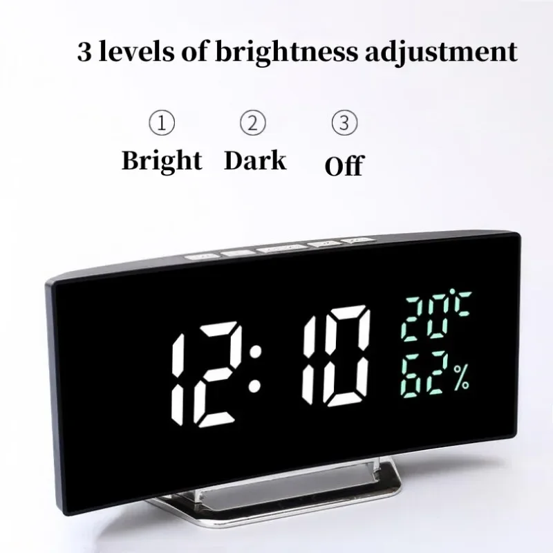 שעון מעורר דיגיטלי מראה עם תצוגת טמפרטורה, תאריך ובהירות מתכווננת