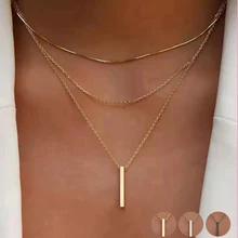 שרשרת קולר וינטג' לנשים-תליון מתכת שכבות זהב