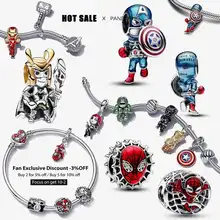 תליון קפטן אמריקה, חרוזי כסף 925, צמיד ספיידרמן, מתנה