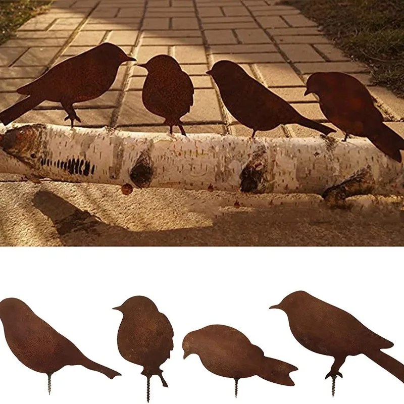 4 יח׳ קישוטי ציפורים ממתכת חלודה- לעיצוב גינה