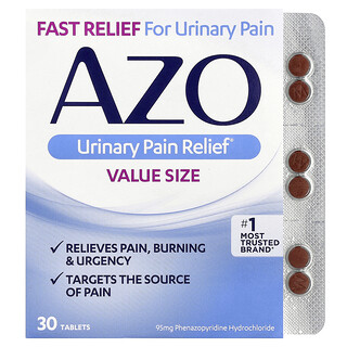AZO, הקלה לכאבי דרכי השתן, 95 מ"ג, 30 טבליות