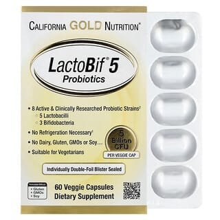 הכירו את California Gold Nutrition, LactoBif® 5 פרוביוטיקה – הפתרון הטבעי לתמיכה בבריאות העיכול שלכם! קפסולות צמחיות אלו מכילות 5 מיליארד CFU (יחידות יוצרות מושבה) של 5 זני חיידקים פרוביוטיים פעילים ואיכותיים. לקטוביף 5 פרוביוטיקה עוזרת לאזן את אוכלוסיית החיידקים הטובים במעי, תומכת בספיגת חומרים מזינים, ומסייעת לתפקוד תקין של מערכת החיסון.