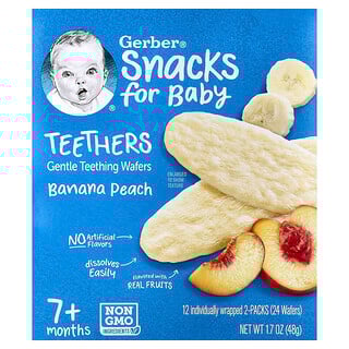 גרבר – חטיפי תינוקות לשיניים בקיעת, דגני בננה-אפרסק (7+ חודשים)