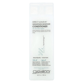הכירו את ה-Giovanni Direct Leave-In™ – מרכך לחות נטול משקל, פתרון מושלם לשיער רענן, מבריק ובריא! מרכך זה, המתאים לכל סוגי השיער, מעניק לחות אינטנסיבית מבלי להכביד על השיער. הנוסחה הייחודית שלו, המבוססת על רכיבים טבעיים ואיכותיים, נספגת במהירות ומסייעת להפחית קשרים, להגן על השיער מפני נזקי הסביבה ולהעניק לו מראה מלא חיים.