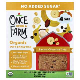 מחפשים חטיף טעים, בריא ונוח לדרך? הכירו את Once Upon A Farm, Organic Soft Baked Bar, Banana Chocolate Chip – חטיף בננה ושוקולד צ'יפס אורגני מבית Once Upon A Farm! כל אריזה מכילה 4 ברים רכים ואפויים, במשקל 34 גרם כל אחד, המושלמים כנשנוש מזין לילדים ולמבוגרים כאחד.