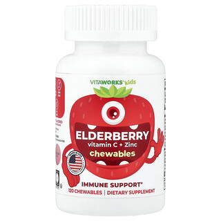 VitaWorks, Kids, Elderberry, Vitamin C + Zinc – תוסף תזונה בטעם פירות יער מעורב
